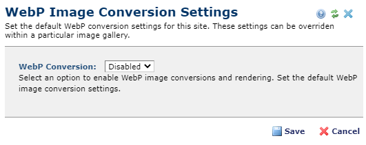 New sites default to WebP Conversion Disabled.